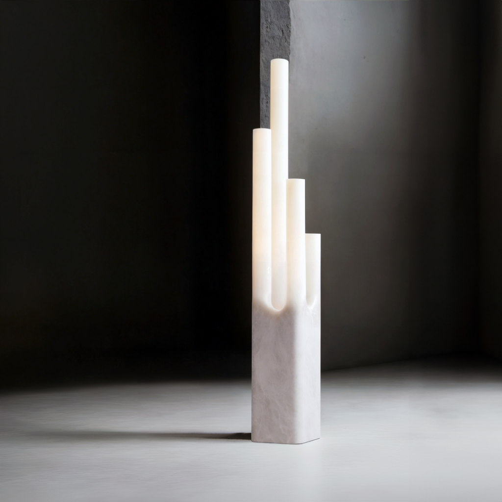 Nacida de la fusión entre arte y diseño, «Altar» encarna una filosofía donde la forma y la narrativa se entrelazan en una danza de elegancia y significado. El alabastro, con su translucidez y textura suave, permite que la luz se filtre de manera sutil y cálida, creando un juego de luces y sombras que transforma cualquier espacio en un remanso de paz y tranquilidad.